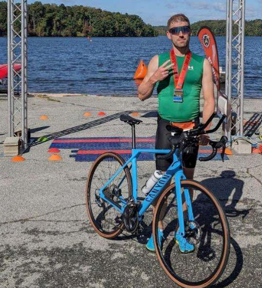 then, he has completed two half ironman events and participates in Sprint and Olympic distance events
